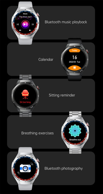 OTA, shortcut bar (control center), data (pedometer, distance, calorie), heart rate, sleep, lift the wrist to light up the screen, weather, WeChat movement, information, reminder (message, water, sedentary, alarm), women's health, stopwatch, countdown, find phone, find bracelet, shake to take a picture, dial switch, music control, settings (language selection, brightness adjustment, duration of the bright screen, vibration settings, restore factory, version information), switch logo, component (function editing), password lock, breathing training, exercise, exercise history, do not disturb mode, power saving mode, low battery reminder, voice assistant (SIRI), call function, frequently used contacts, phone dialer, split screen (sidebar), flashlight, cash code, code scanning connectivity, business card (make friends), calculator, engineering test mode & shipping Mode, Calendar.