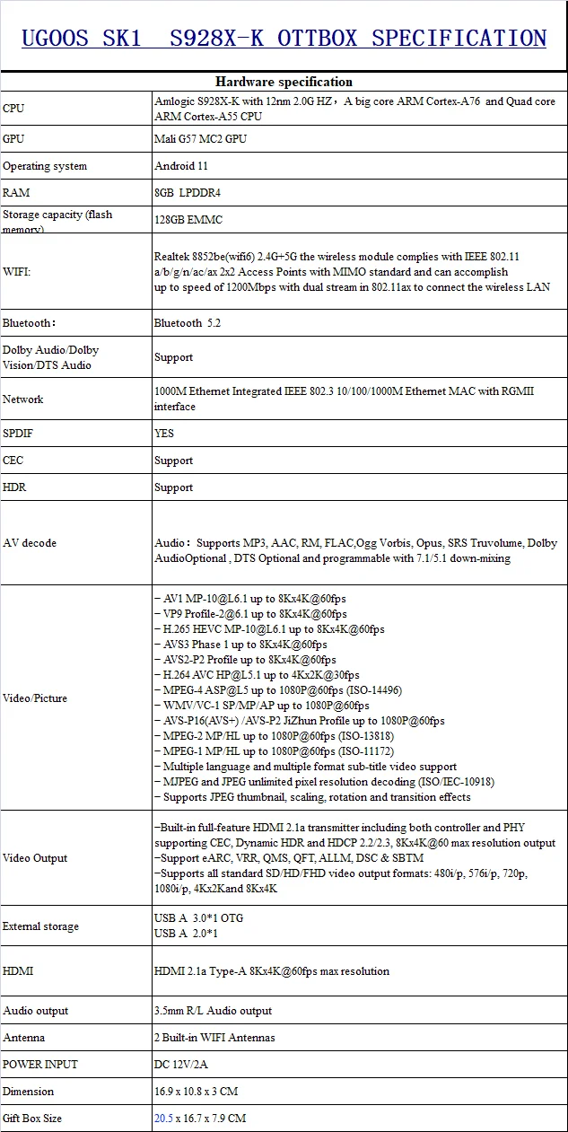 Amlogic S928X-J 12nm 2.0GHz, ARM Cortex-A76 ¹× Cortex-A55