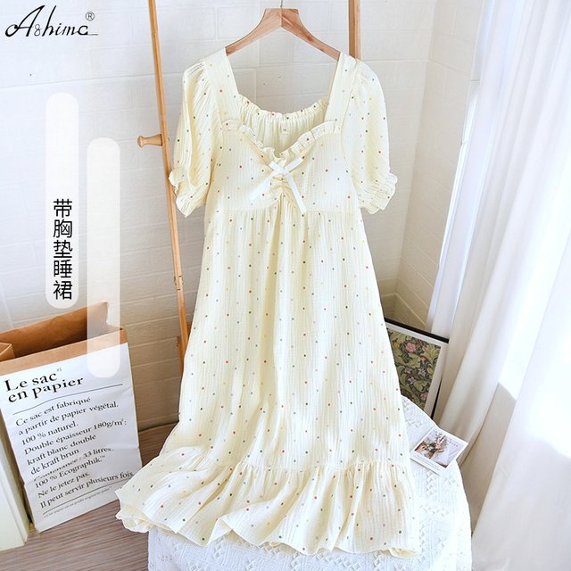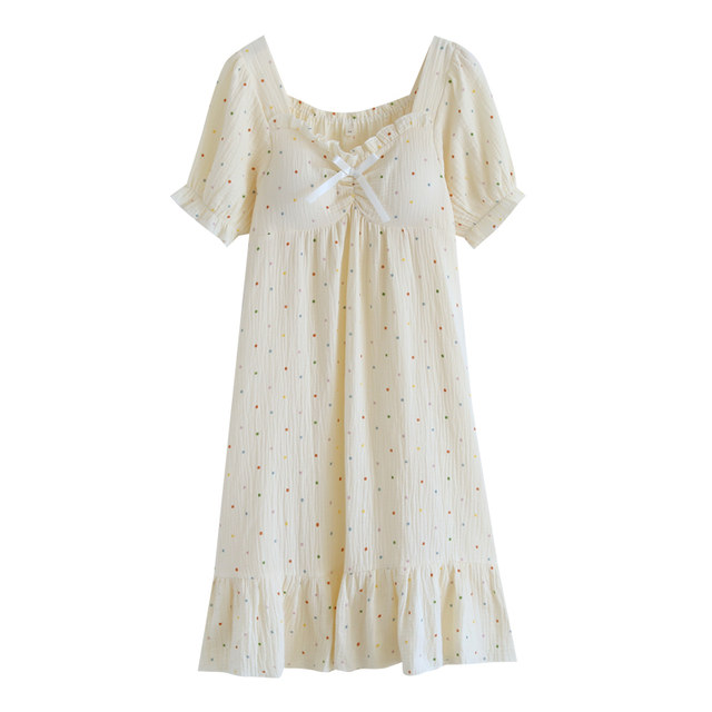 [(-3)Short Sleeve square collar skirt with colored dots]