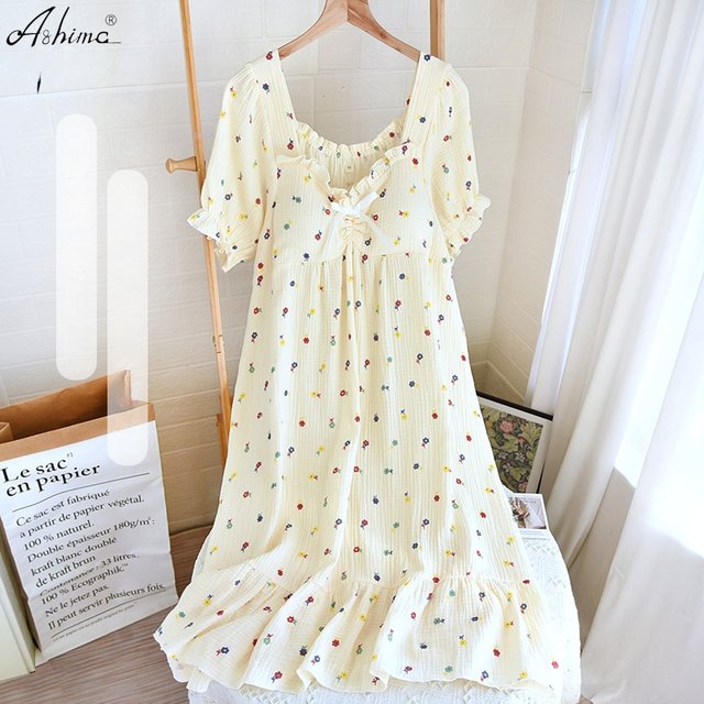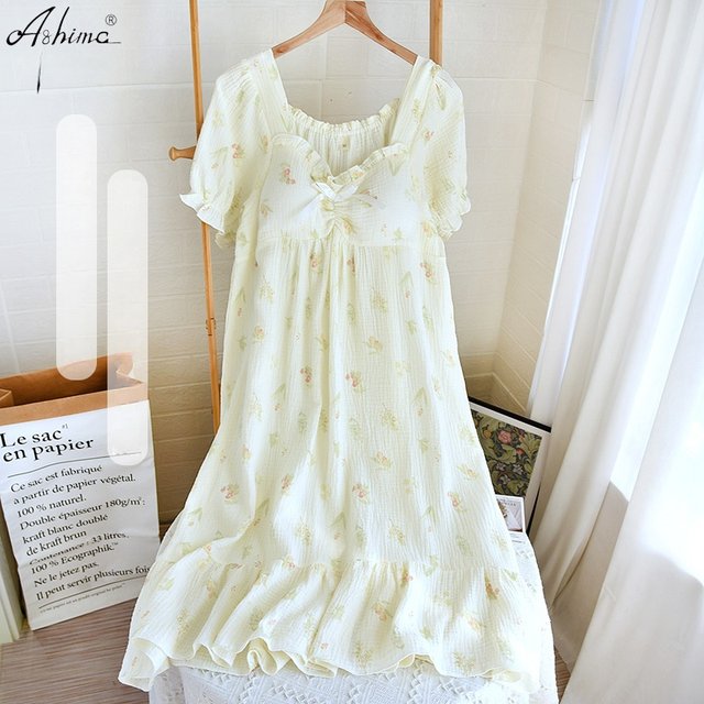 [(-1)Short Sleeve square collar skirt grass yellow flower rabbit]