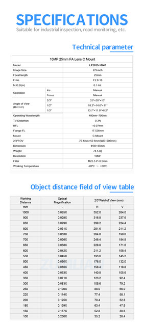 ºê·£µå À̸§: ZUMLIAN ¸ðµ¨ ¹øÈ£: LF2523-10MP ÃÊÁ¡ °Å¸®: 25mm °¨Áö ¿µ¿ª: 2/3"