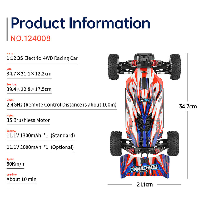 WLToys 124008 RTR 1/12 2.4G 4WD ºê·¯½Ã¸®½º RC ÀÚµ¿Â÷´Â ½±°í Æí¸®ÇÏ°Ô »ç¿ëÇÒ ¼ö ÀÖµµ·Ï ¼³°èµÇ¾ú½À´Ï´Ù. ÃÖ´ë 60km/hÀÇ ÃÖ°í ¼Óµµ¿¡ µµ´Þ ÇÒ ¼öÀÖ´Â °í¼Ó ºê·¯½Ã¸®½º ¸ðÅͰ¡ ÀåÂøµÇ¾î ÀÖ½À´Ï´Ù. ¶ÇÇÑ 2.4G ¿ø°Ý Á¦¾î ½Ã½ºÅÛÀº ¾ÈÁ¤ÀûÀÌ°í ¹ÝÀÀÀûÀÎ ¿¬°áÀ» Á¦°øÇÏ¿© Á¤¹ÐÇϰí Á¤È®ÇÏ°Ô ÀÚµ¿Â÷¸¦ Á¦¾î ÇÒ ¼ö ÀÖ½À´Ï´Ù. °Ô´Ù°¡, ÀÚµ¿Â÷´Â 3S ¹èÅ͸®¸¦ »ç¿ëÇÏ¸ç ¿ÏÀüÈ÷ Á¶¸³µÇ¾î ÀÛµ¿ ÇÒ Áغñ°¡µÇ¾îÀÖ¾î »óÀÚ¿¡¼ ¹Ù·Î °æÁÖ¸¦ ½ÃÀÛÇÒ ¼ö ÀÖ½À´Ï´Ù.