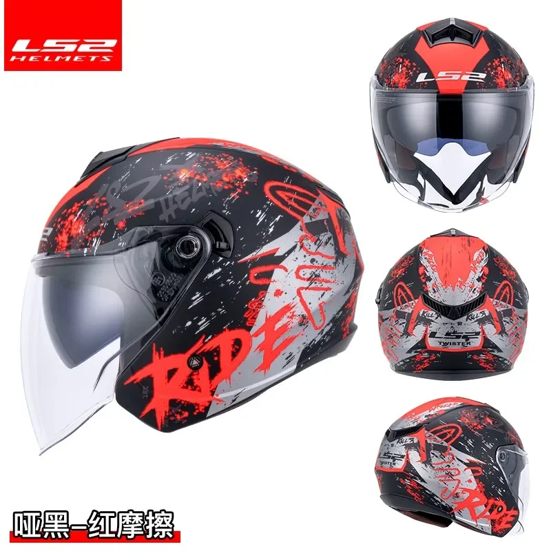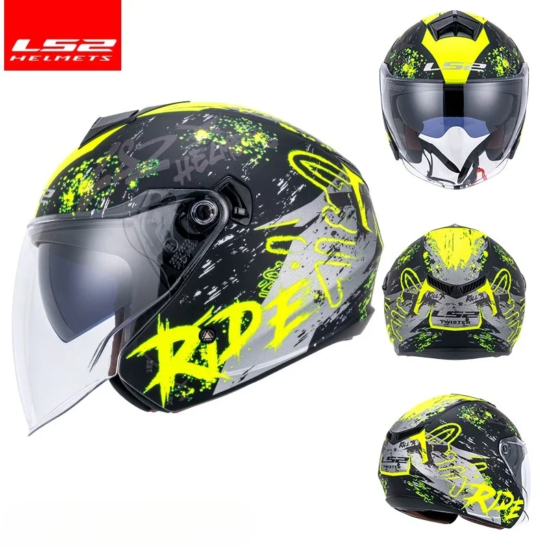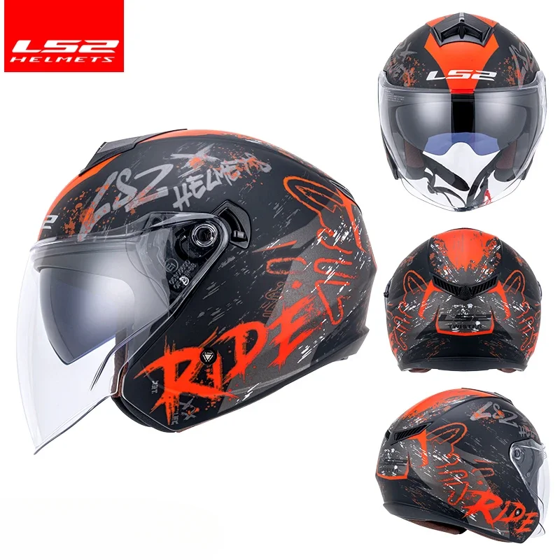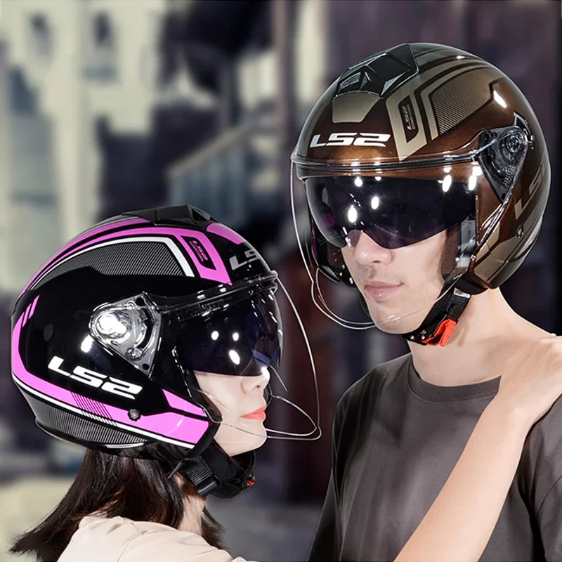 Lovers LS2 OF573 Motorcycle Helmet Dual Lens Half 3/4 Helmet Motorbike Riding Capacete Electric Scooter Casco Ultrav